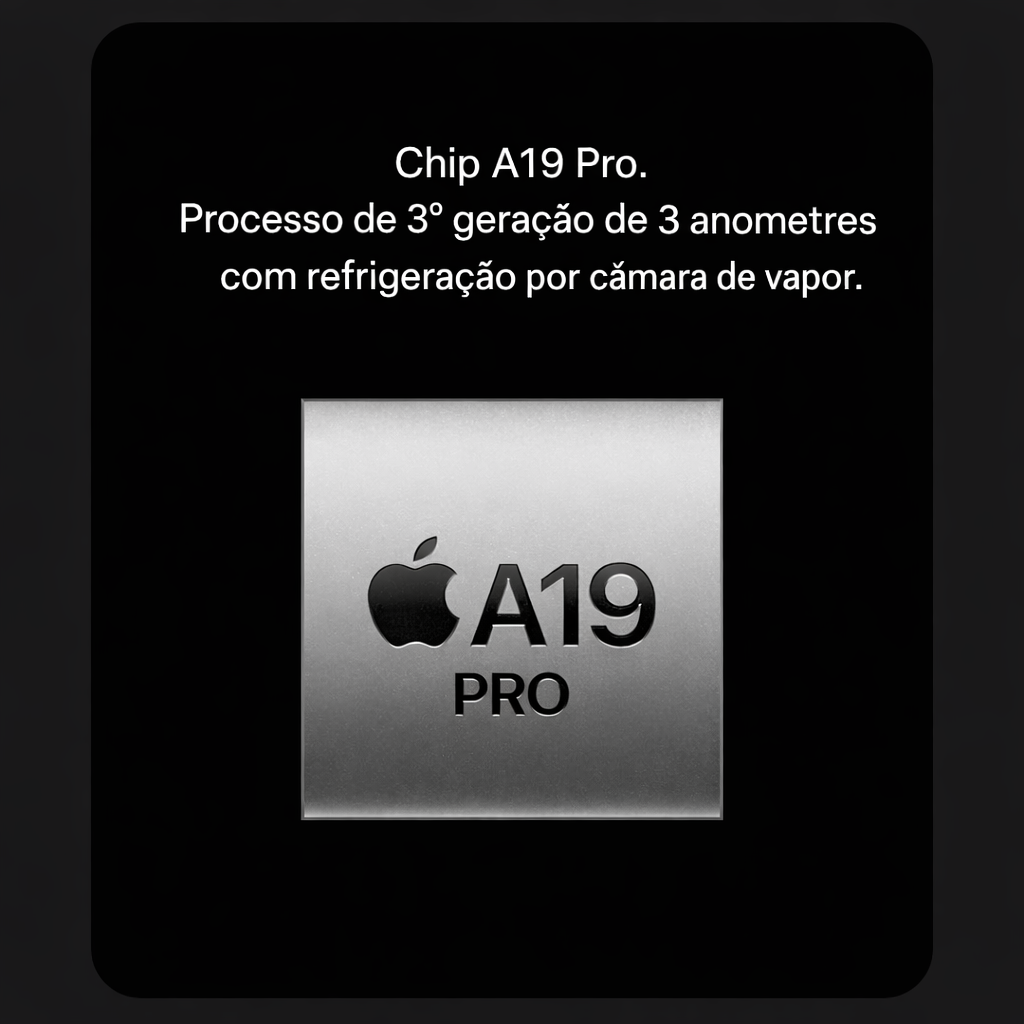 ⚡ Design inovador · Câmara poderosa · Chip A19 Pro · Experiência premium