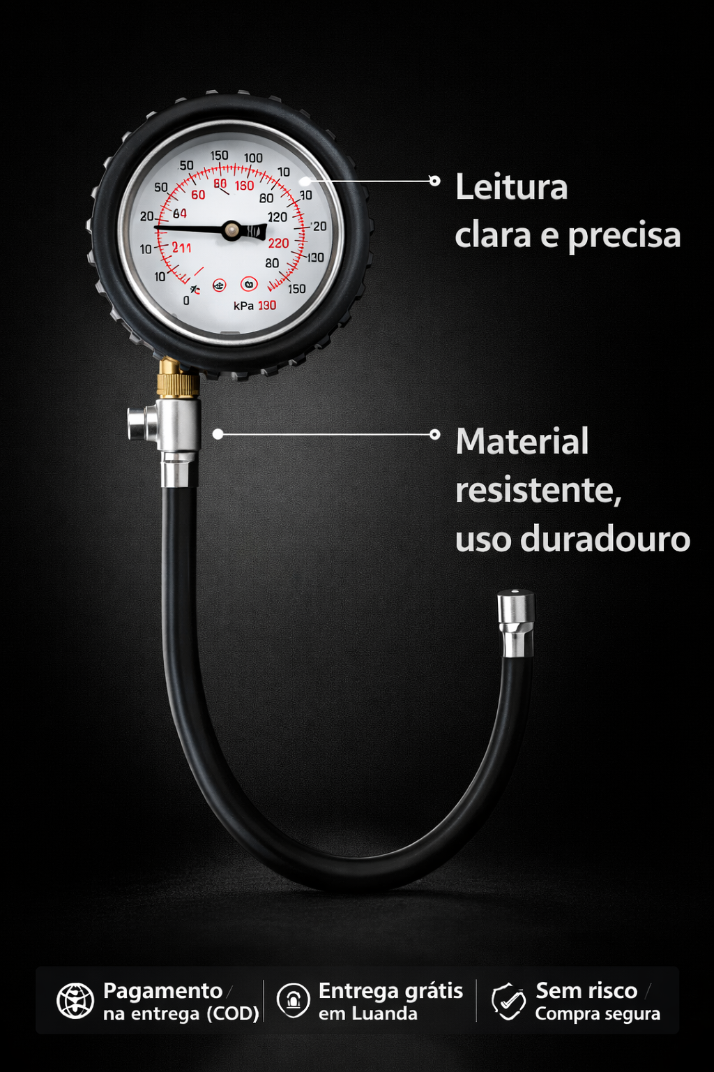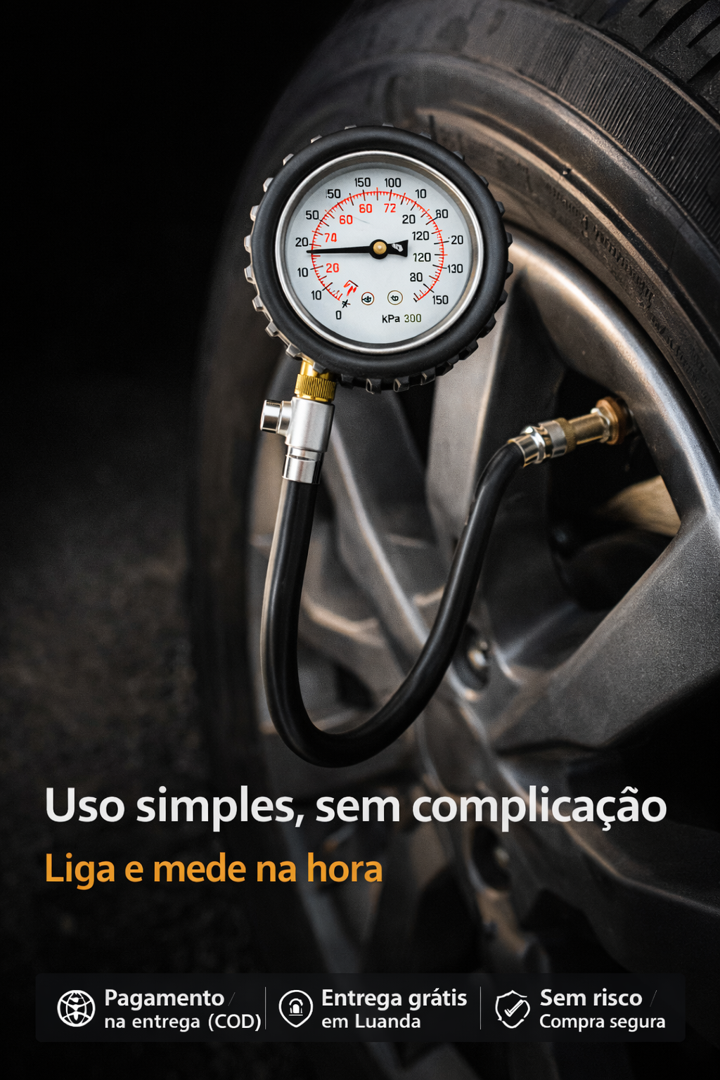 Com este medidor de pressão profissional, podes controlar facilmente a pressão dos pneus em poucos segundos ⏱️.