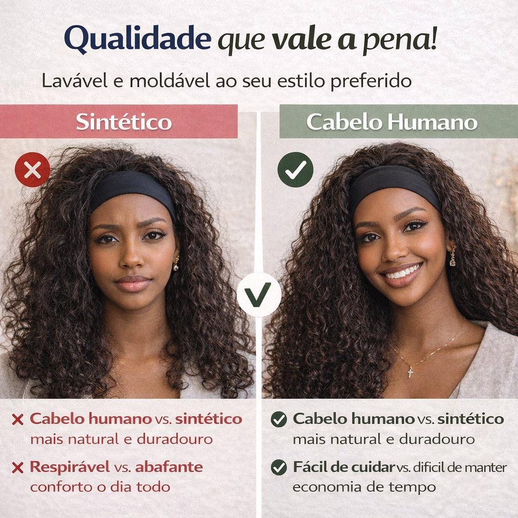 Peruca Cacheada de Cabelo Humano 100% Natural – Macia, Realista e Fácil de Cuidar 💁🏾♀️✨