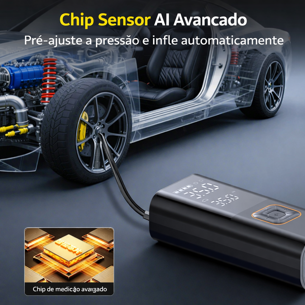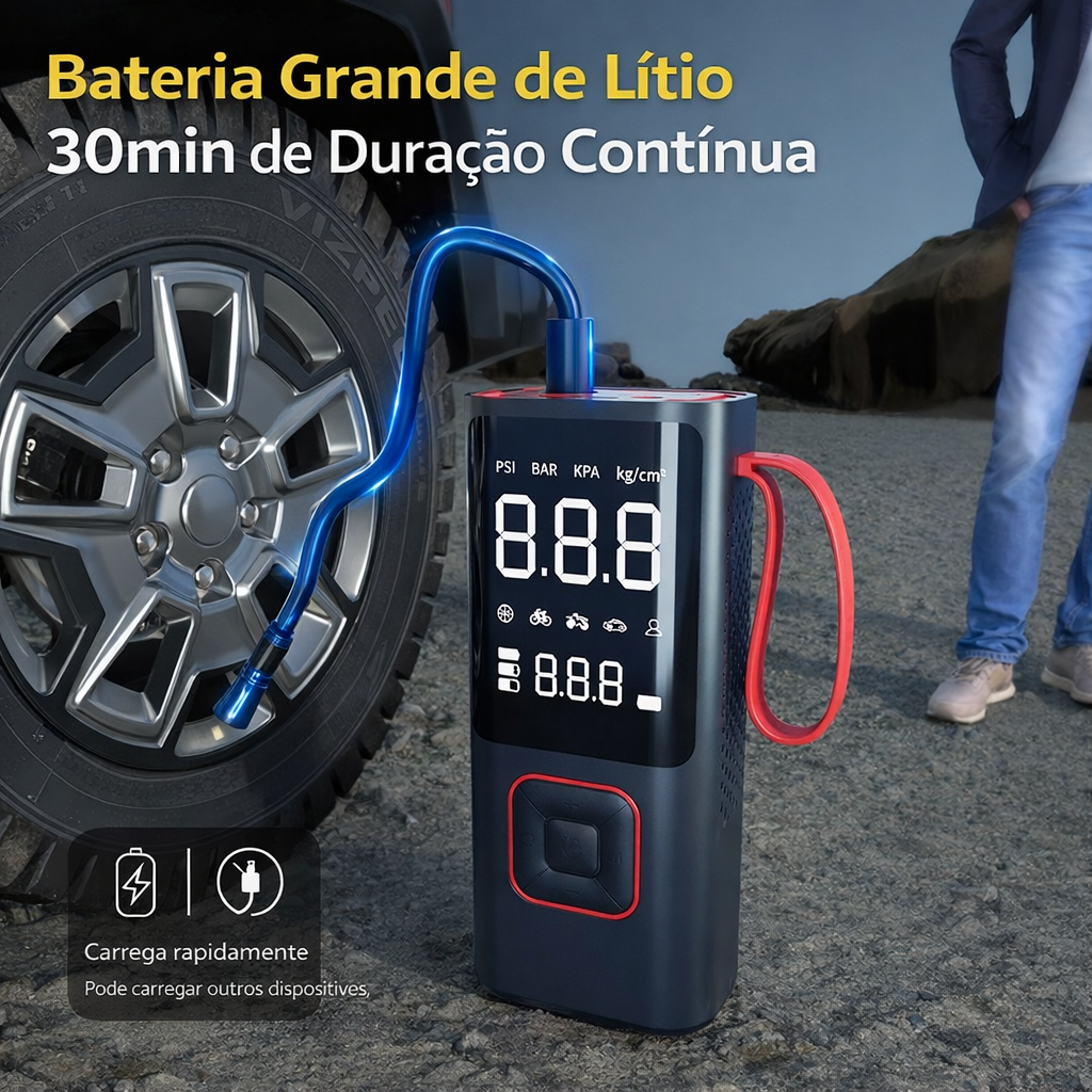 🚗 Fonte de alimentação multifuncional de emergência para automóvel - Bomba de ar inteligente - Power Bank portátil (3 em 1)
