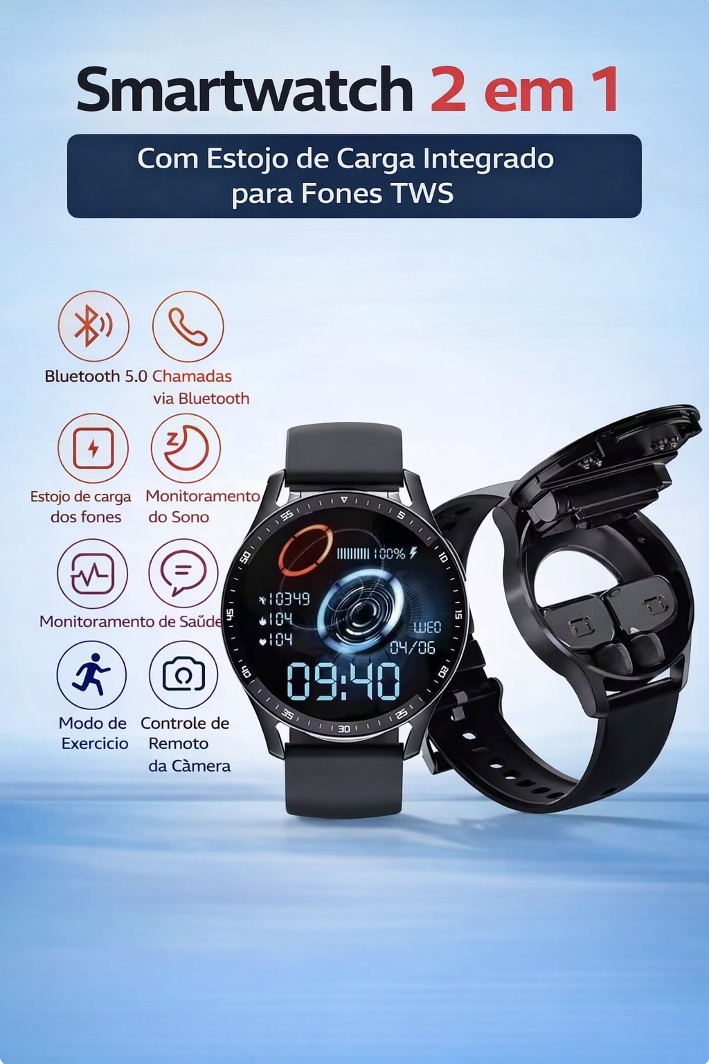⌚🎧 Relógio inteligente + fones sem fio em um só produto!