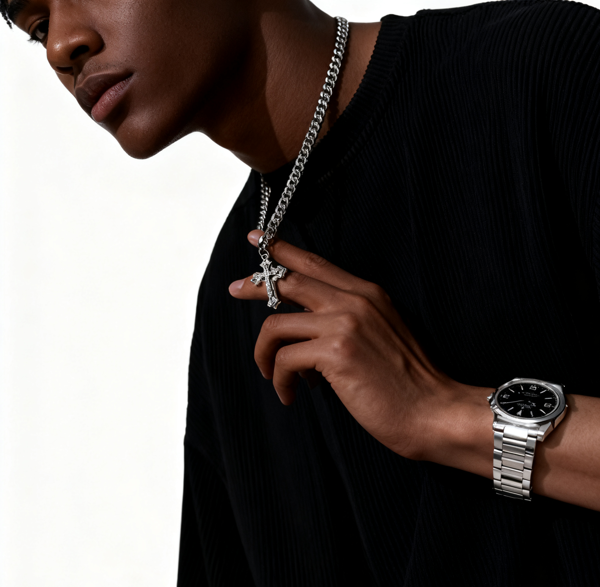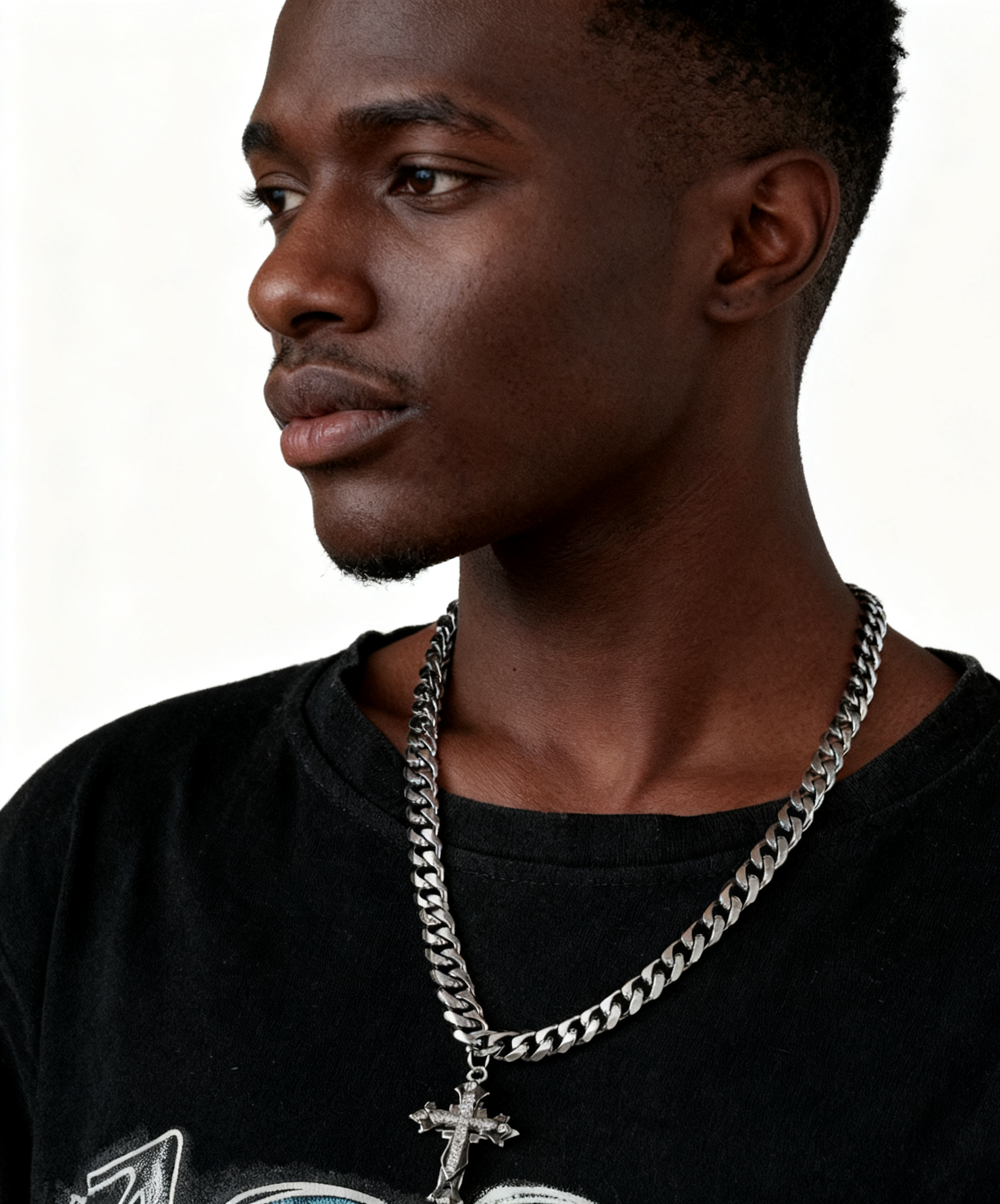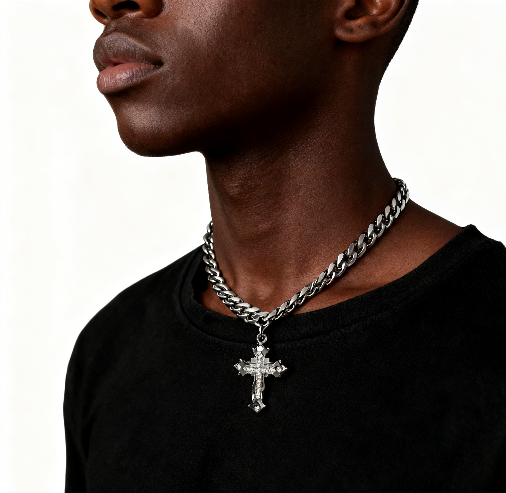 Quando você coloca este Colar de Cruz Pesada em Titânio,