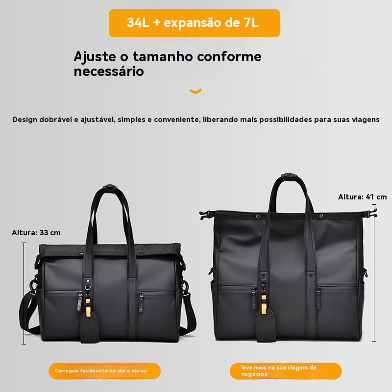 👜 Modos Duplo: Dobrável + Expansível: 33 cm para uso diário, expande-se para 41 cm para viagens de negócios ou lazer.