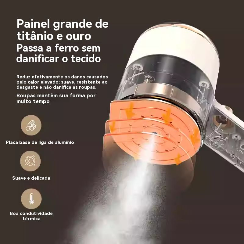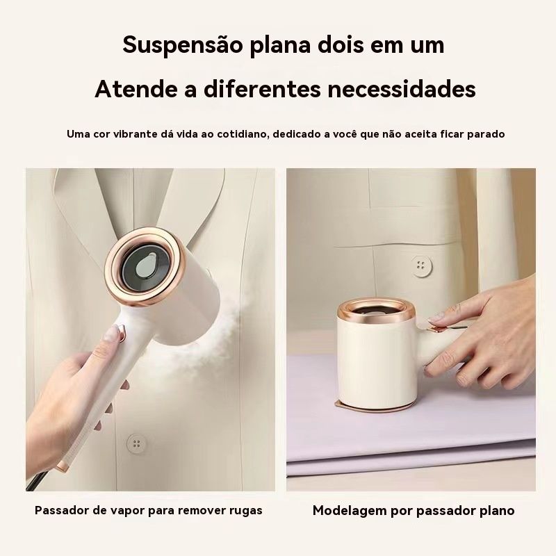 O design minimalista com detalhes dourados dá um toque de luxo 🪄, enquanto o vapor envolvente penetra suavemente no tecido, desfazendo cada ruga como mágica. Basta uma passada… e pronto! ✨